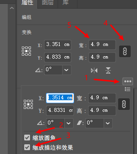 插入到AI中的图片可能会很大,这时就要对图片进行缩放,可以用鼠标进行缩放,如果要保证横纵缩放比例一致,需要按住Shift键。用鼠标缩放可能会导致字体大小不一致,这时需要输入具体数值改变图片大小,输入的数值需要与Matlab中设定的图片大小一致,可能缩放过后线条的粗细没变,这时需要设置缩放描边和效果